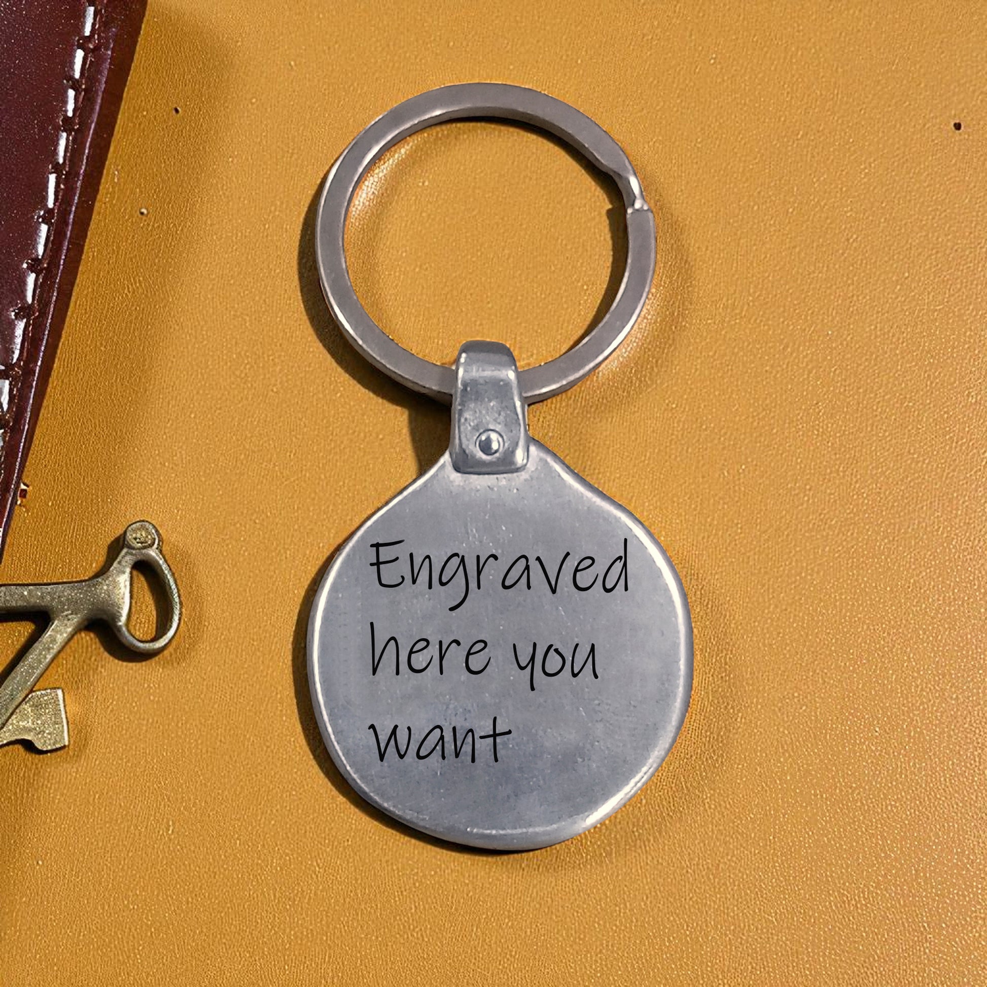 Opción Gratis de Grabar nombre o lo que tú quieras en la cara posterior del llavero.