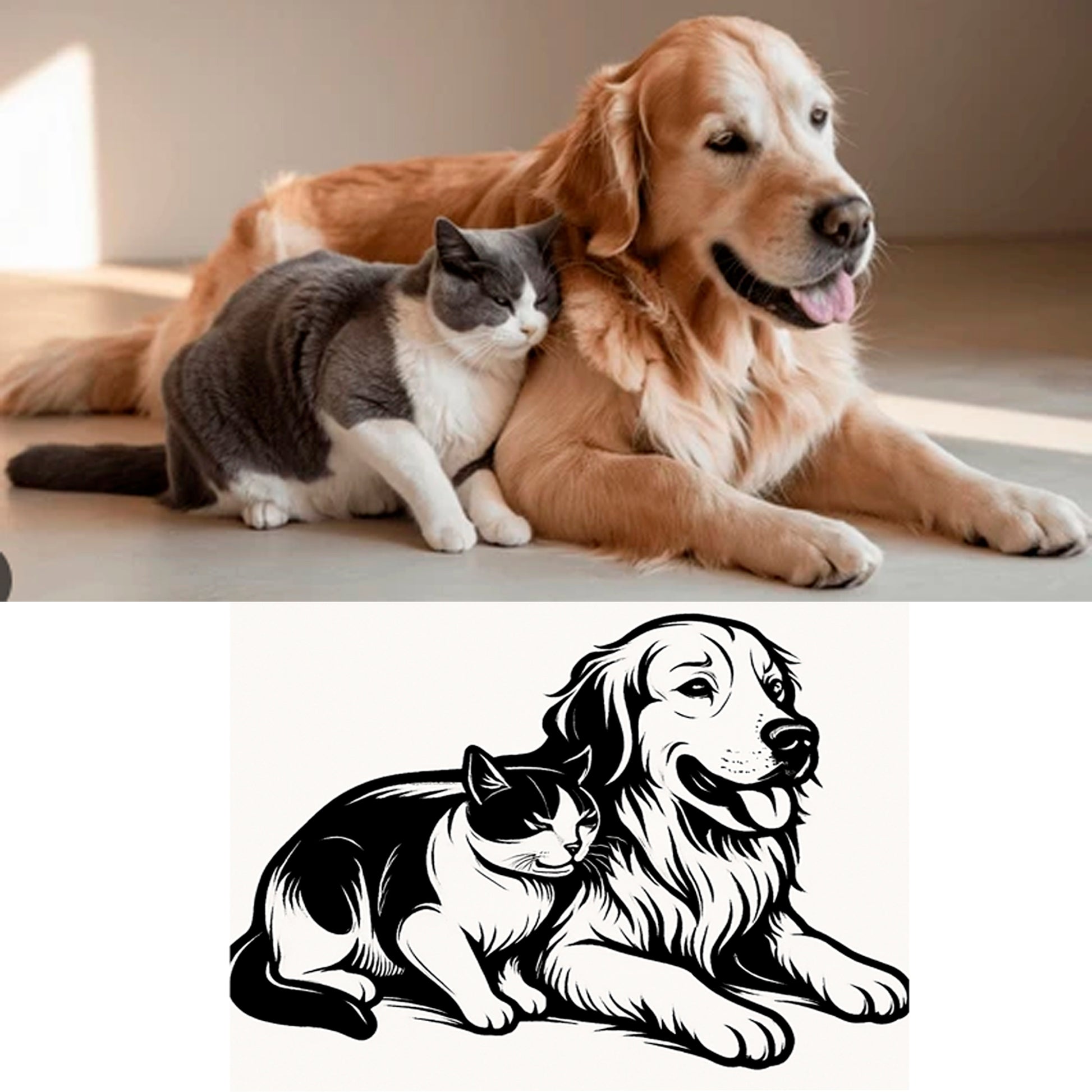 El proceso del pedido consiste en enviar una foto de buena calidad, el mínimo deberá ser 1050x1050 pixeles. Tenga en cuenta los tamaños de las placas. Luego haré una ilustación del dibujo en blanco y negro. Una vez hecha la ilustración se la envio al cliente para que confirme si es de su agrado. Después voy a proceder a el grabado de la placa personalizada. El grabado se realiza tipo mecanizado o rayado semi-profundo sobre metal dando un aspecto rugoso al tacto. El ultimo paso es dar un toque de tinta negra y un pulido semi- abrillantado. Las bases de metal son de Zamack (Zinc y Niquel) y tienen un estilo propio y único retro-vintage. Són resistentes y duraderos. El la cara posterior de la placa grabo texto o dedicatoria. Fuente de letra INK . La ilustración en formatos PNG y SGV puedes hacer uso de ella para grabar o imprimir camisetas, Cricut Explore, Silhouette Designer, cuadros o lo que quieras. Solo para uso personal NO comercial.